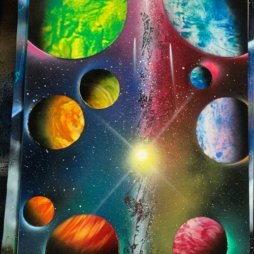 Size A3 Planets In Space Spray Paint Art Etsy